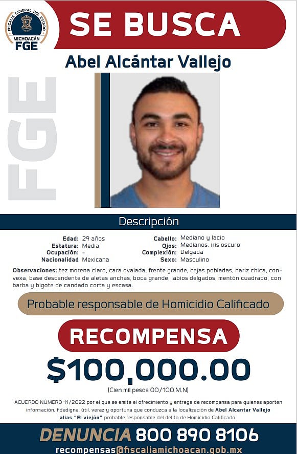 Se trata de Abel Alcántar Vallejo, alías “El Viejón”, por quien se ofrece una recompensa de 100 mil pesos a quien dé información que ayude a su detención.