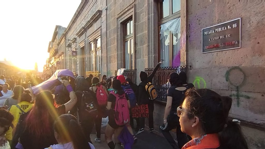 “El gobernador Alfredo Ramírez Bedolla y sus policías reprimieron la movilización más grande que habíamos visto hasta año, con sus gases y sus balas de goma, sus vallas creyeron que nos podían aterrar y resultó al contrario, pues volvimos más fuertes y es que mostraron que los que tenían y tienen miedo son ellos. El tamaño de sus vallas es el tamaño de su apatía y su indiferencia hacia las mujeres, prefieren cuidar las paredes que a nosotros”.